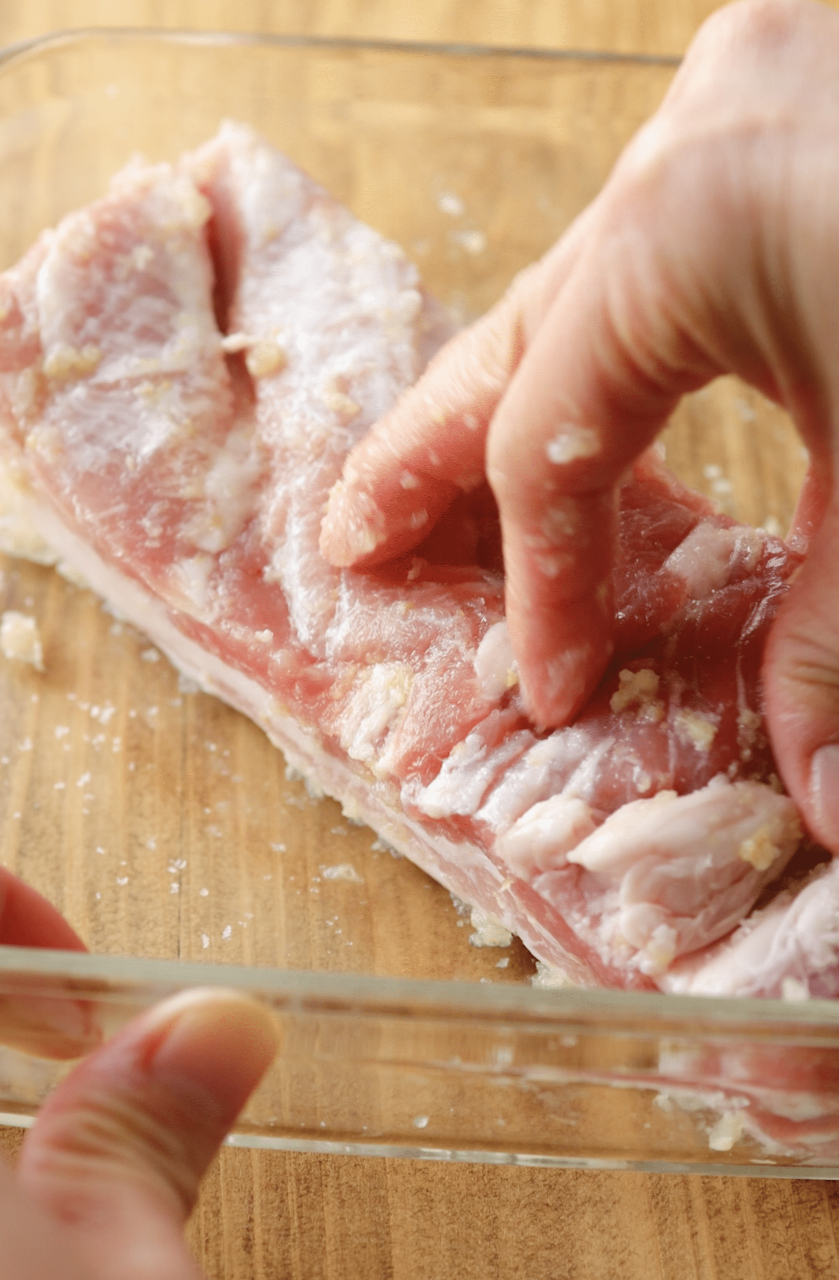 豚バラ肉は耐熱ボウルに入れ、Aを加えてよくもみ込み、下味をつける。