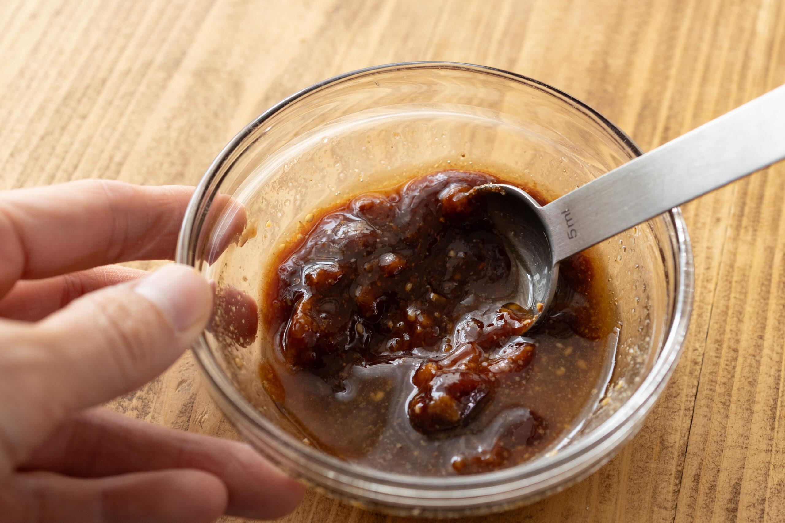 - みそ…大1 コチュジャン…大1 砂糖…小1/2 酢…小1 ごま油…小1 すりごま…小1 おろしにんにく…小1/2