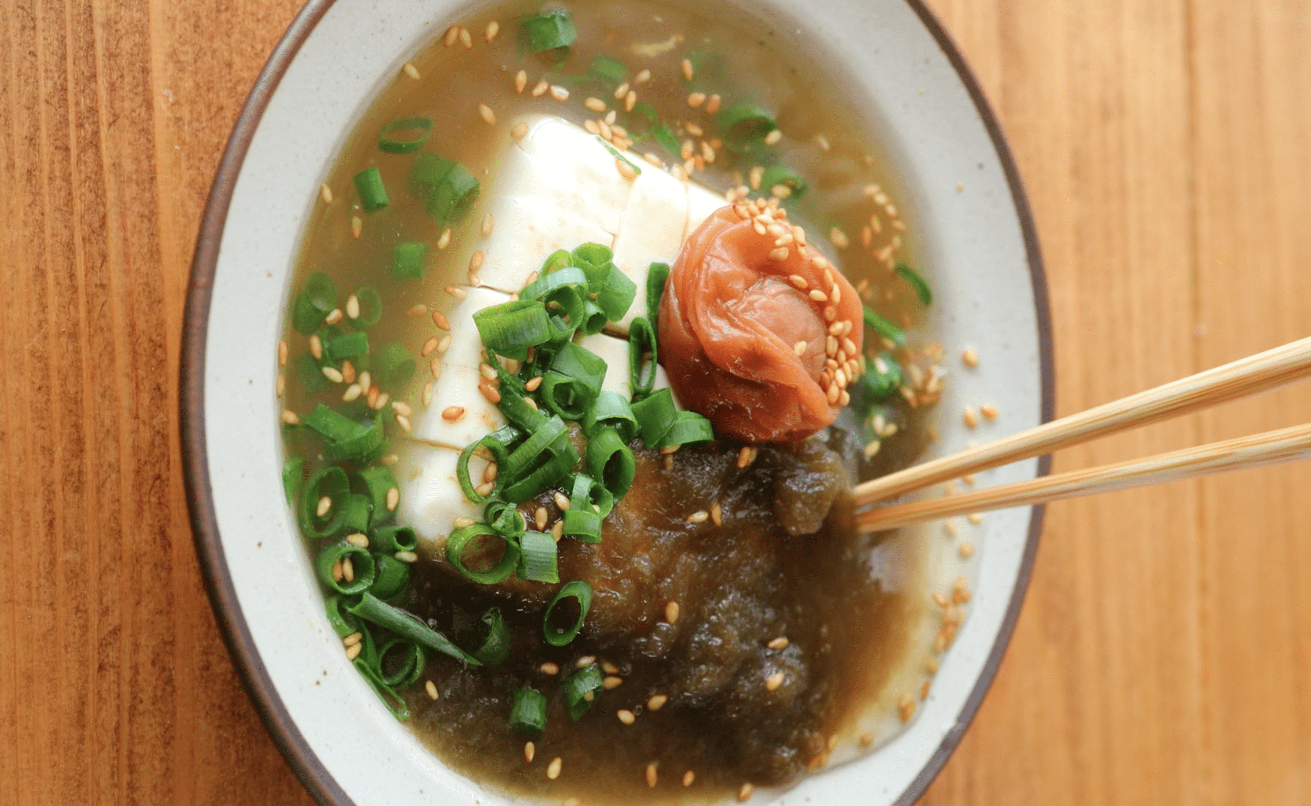 • A和風出汁の素…小1/2 Aポン酢…小2 A湯…100~150ml(梅の塩分濃度によって調整) Aごま…好みで