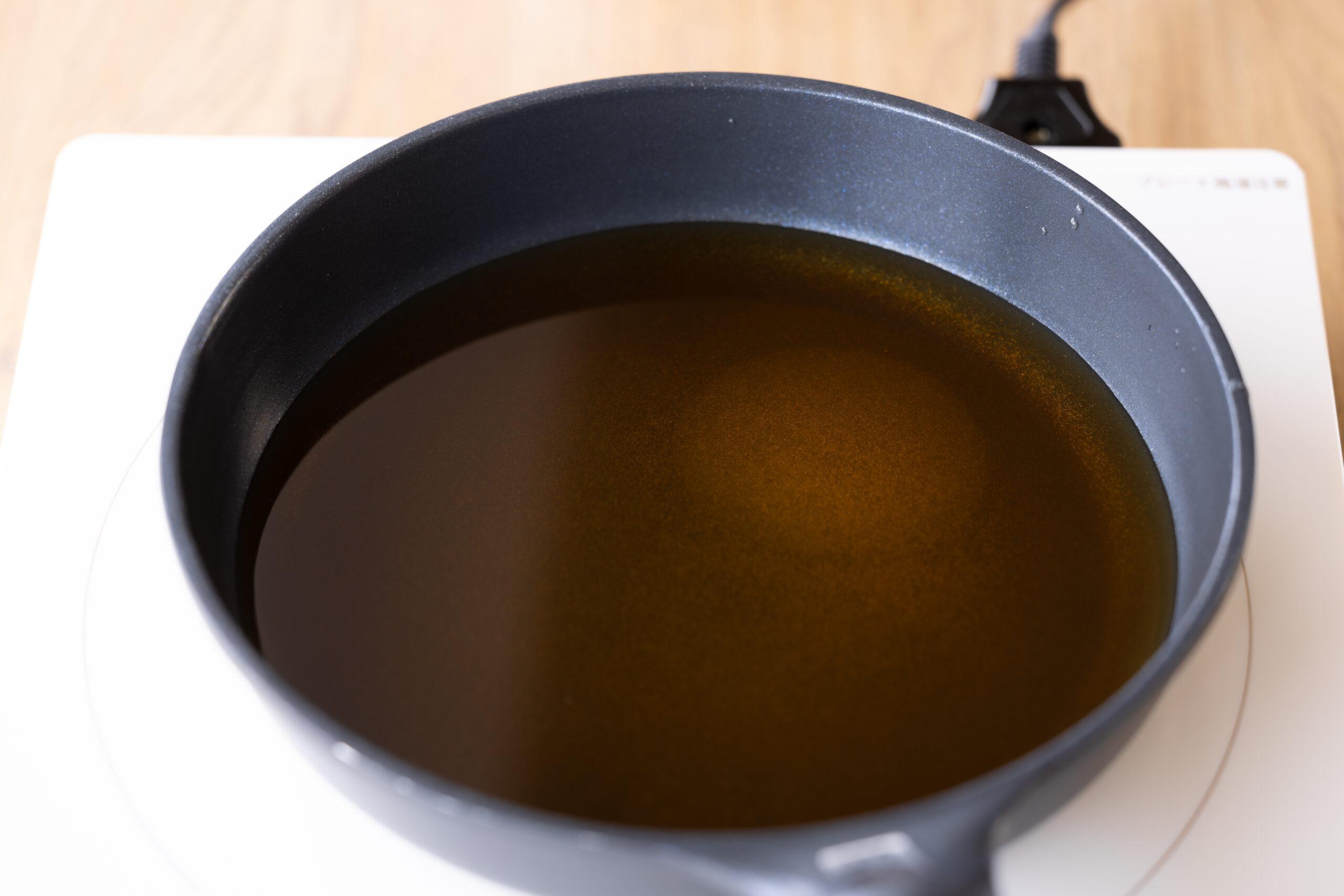 卵を割り入れ、黄身に出汁をまわしかけながら1〜2分お好みの固さになるまで煮る。