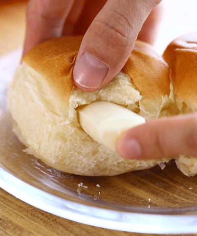KING’S HAWAIIAN(キングスハワイアン)オリジナルハワイアンスウィートロールの真ん中に穴を開ける。穴にチーズを入れる。