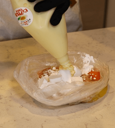• 卵…1個 片栗粉…大3 マヨネーズ…大1 酒…小1 塩胡椒…少々