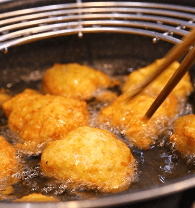 ①をスプーンですくい入れ、両面カリッと揚げ焼きにして油を切る。