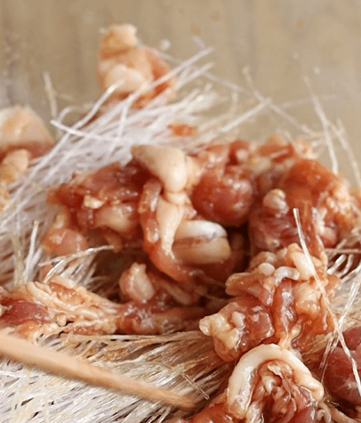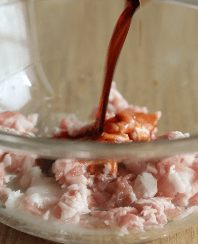 1. 耐熱ボウルに豚肉を入れ、食べやすい大きさに切る。Aを加えて混ぜ合わせる。