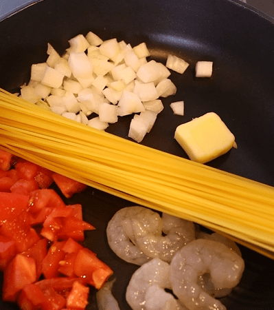深めのフライパンにすべての材料を入れて中火で加熱する。沸騰したらパスタの規定時間+4分煮込む。