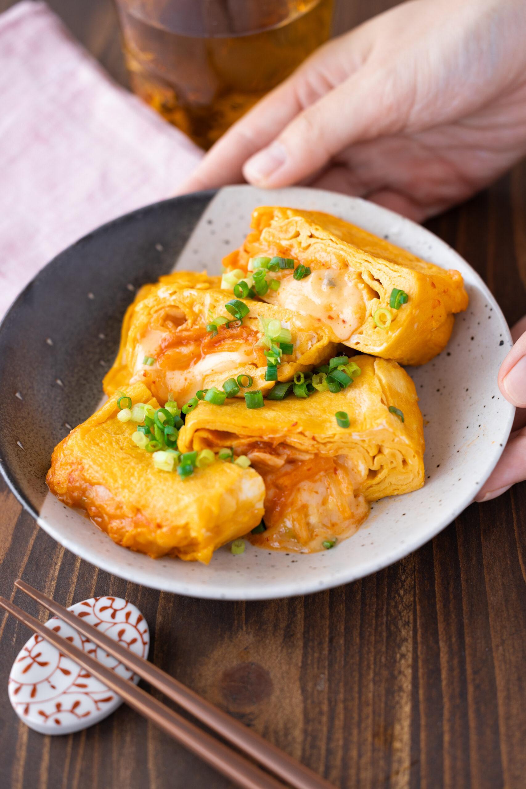 いつもの卵焼きにキムチとチーズを入れるだけ!コスパ最強でおかずにもお弁当にも♪ キムチーズ厚焼き卵
