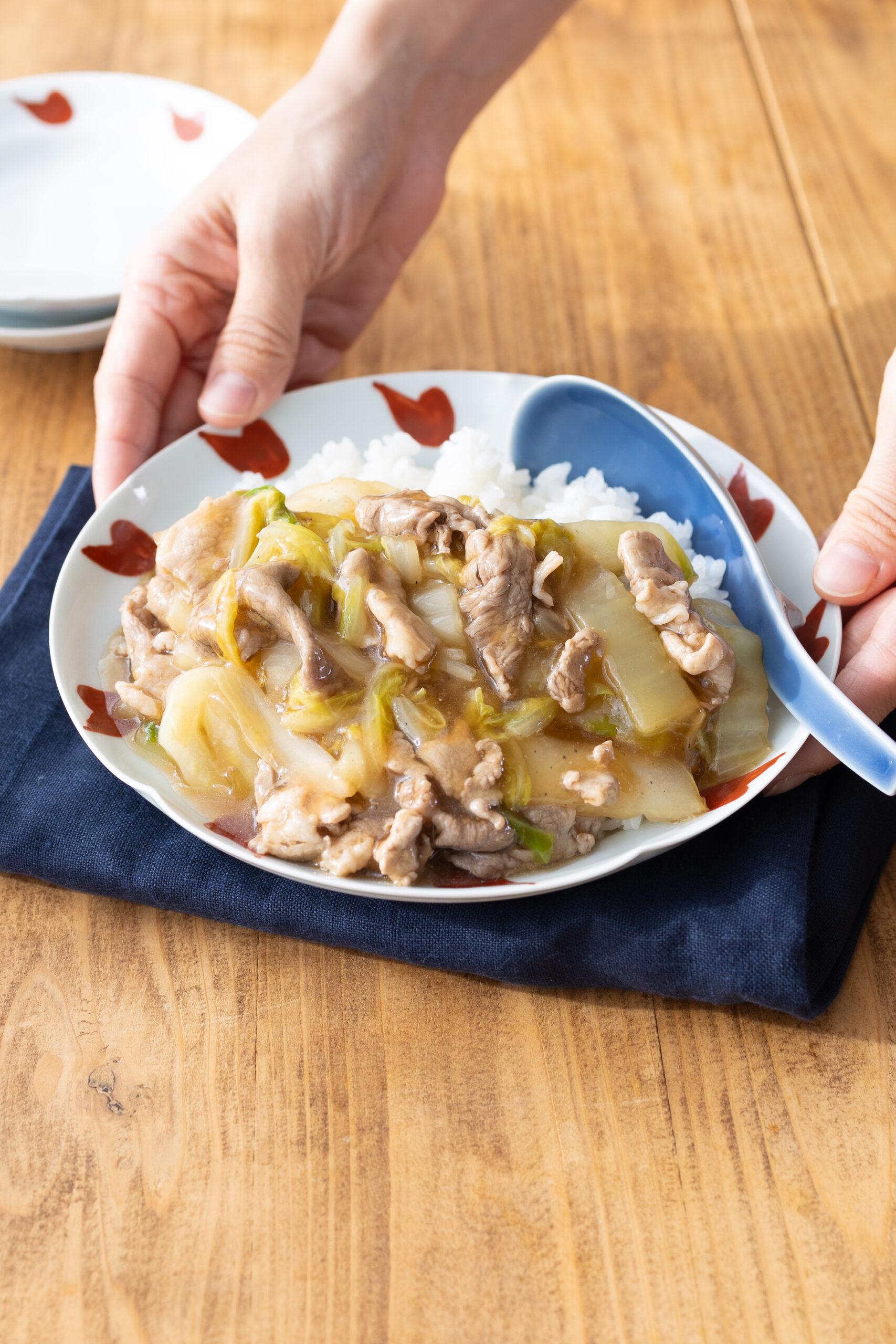 寒くなると甘みが増して、 値段もグッと下がる“白菜”が主役! 豚こま白菜あんかけ丼