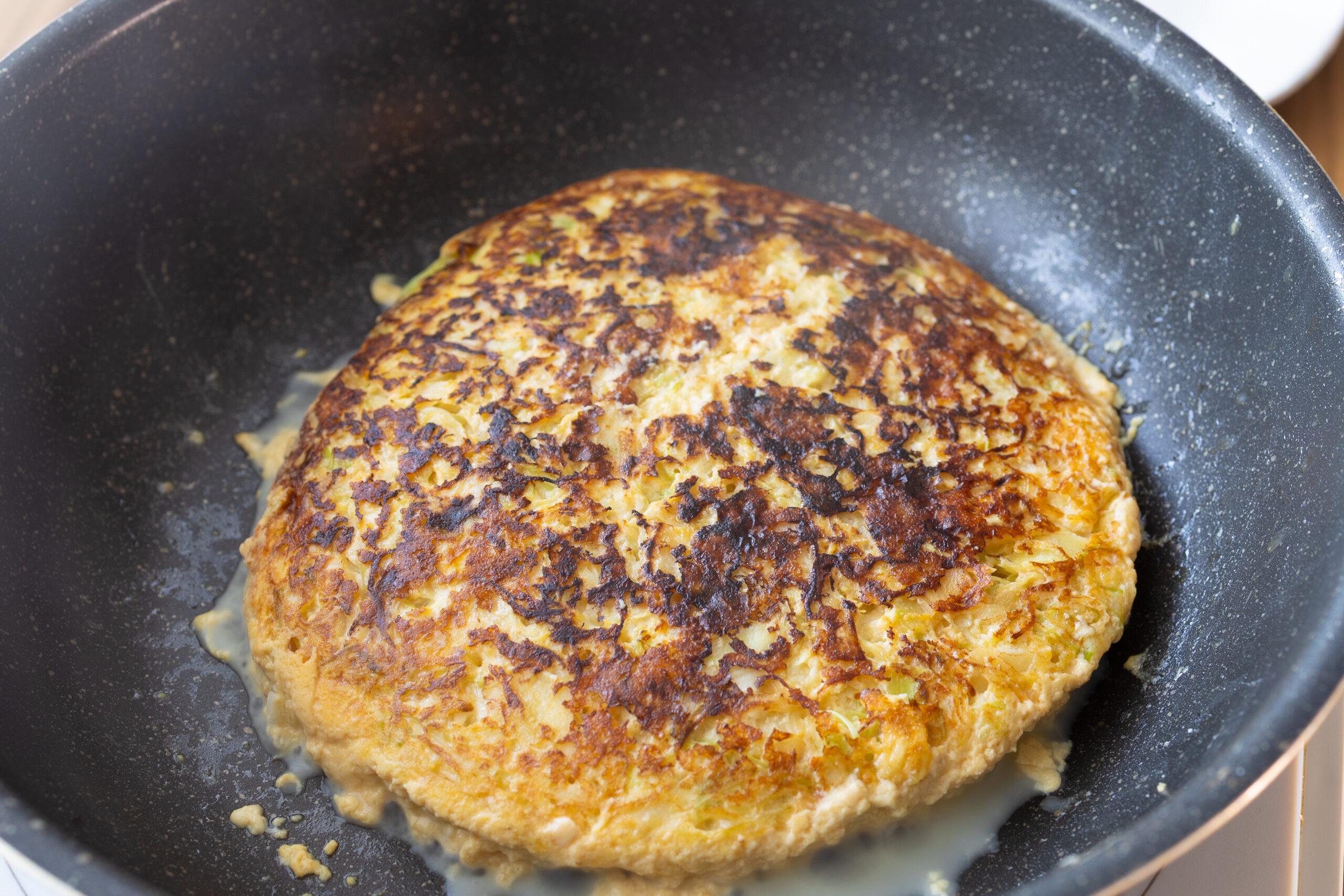 ひっくり返して、弱目の中火で3分蒸し焼きにする。仕上げに中火で30秒加熱する。